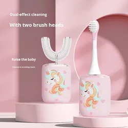 U-образная звуковая электрическая зубная щетка для детей, перезаряжаемая со светодиодным дисплеем и мягкой щетиной, с питанием от USB для домашнего использования